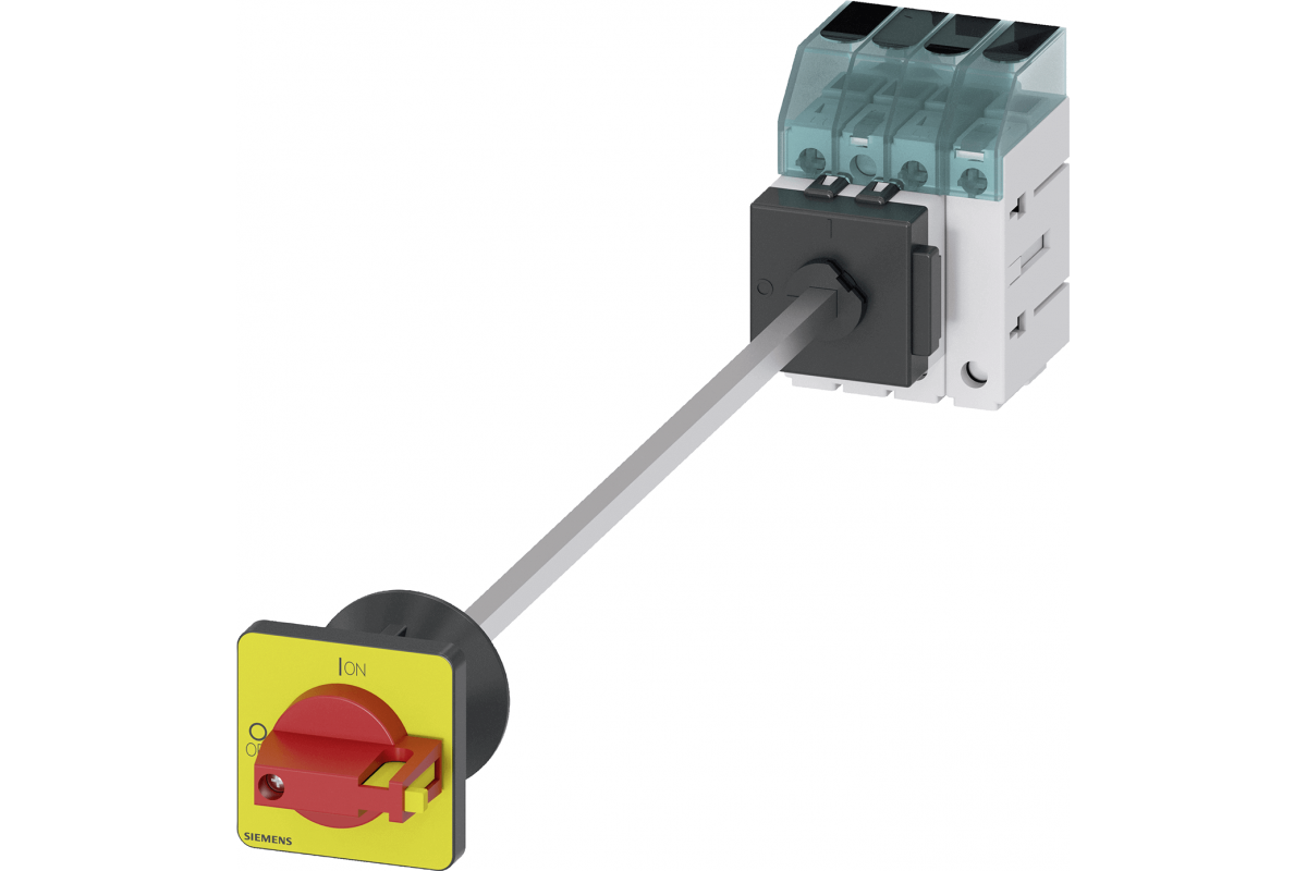 Выключатель нагрузки 3LD3, Iu 40 A Главный выключатель 3-полюсный + N Номинальная рабочая мощность при AC-23 A при 400 В 18.5 кВт напольный монтаж Базовый выключатель с дверной муфтой Монтаж в центральном отверстии 22.5 мм Тумблер красный / желтый 48x48 мм
