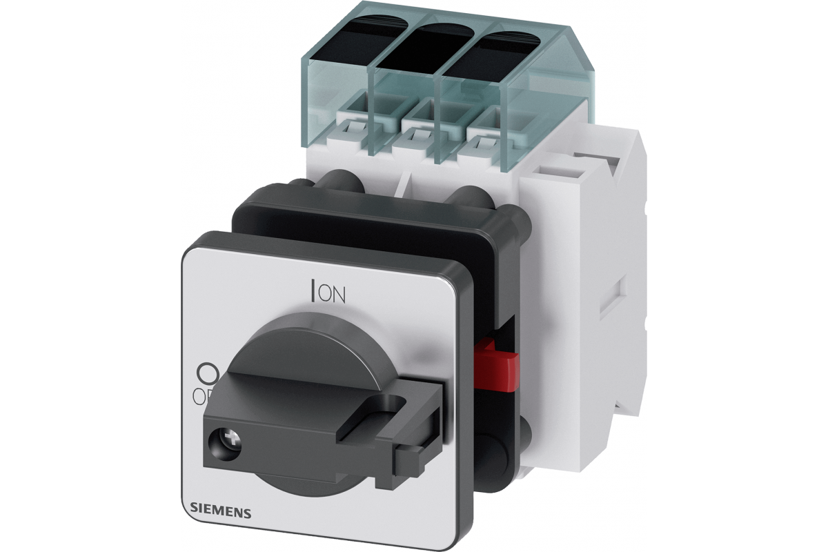 Выключатель нагрузки 3LD3, Iu 40 A Главный выключатель 3-полюсный Номинальная рабочая мощность при AC-23 A при 400 В 18.5 кВт Монтаж на передней панели Базовый выключатель с монтажом в центральное отверстие 22.5 мм Тумблерный привод черный 48x48 мм со вспомогательным выключателем 1OE + 1S