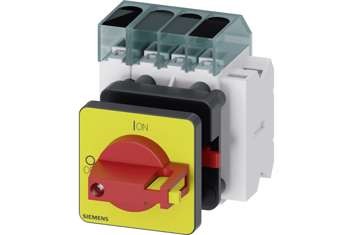 Выключатель нагрузки 3LD3, Iu 40 A Главный выключатель 3-полюсный + N Номинальная рабочая мощность при AC-23 A при 400 В 18.5 кВт Монтаж на передней панели Базовый выключатель с креплением в центральное отверстие 22.5 мм Тумблер красный / желтый 48x48 мм со вспомогательным выключателем 1OE + 1S