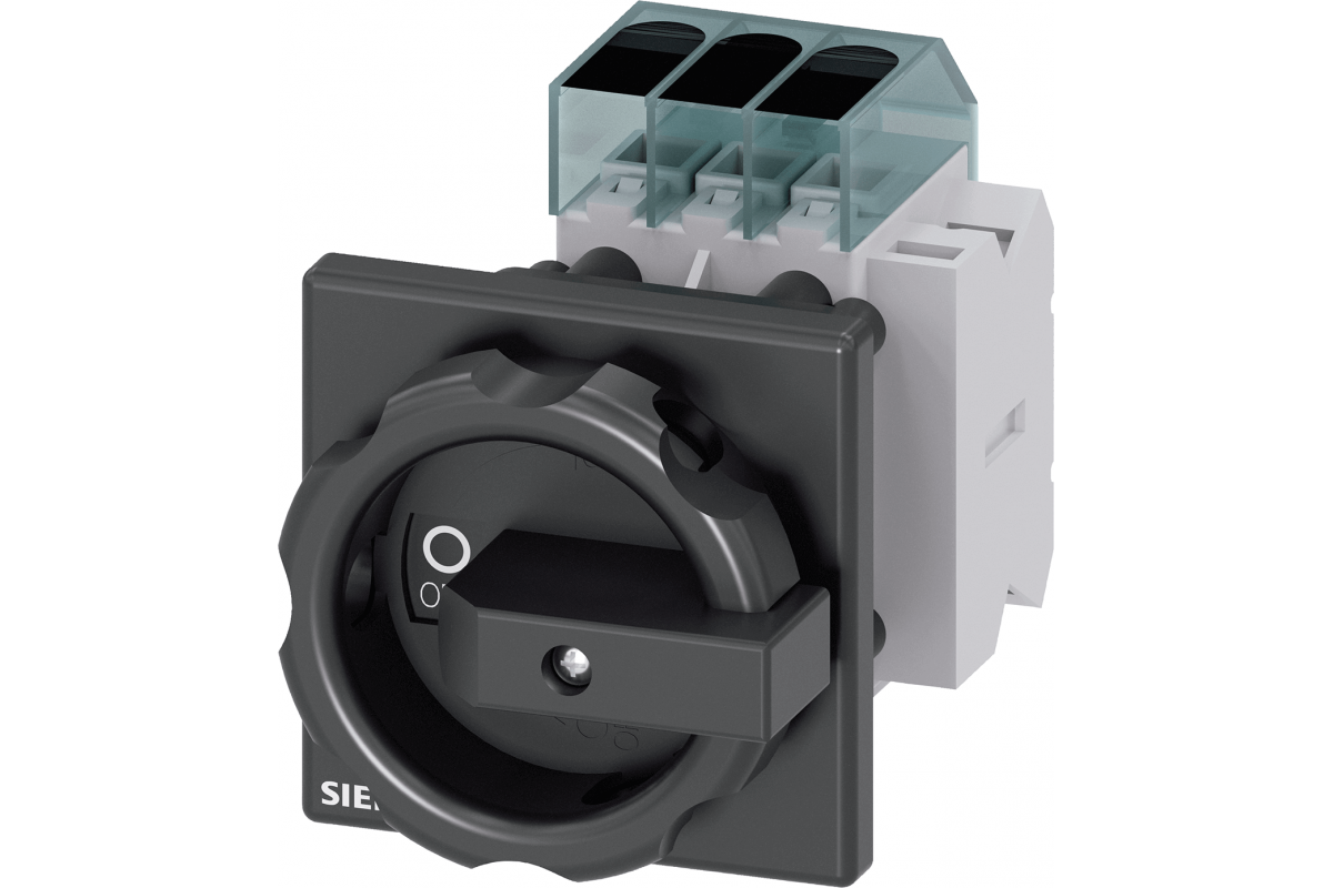 Выключатель нагрузки 3LD3, Iu 40 A Главный выключатель 3-полюсный Номинальная рабочая мощность при AC-23 A при 400 В 18.5 кВт Монтаж на передней панели Базовый выключатель с монтажом в центральное отверстие 22.5 мм Тумблер черный 66x66 мм со вспомогательным выключателем 1OE + 1S
