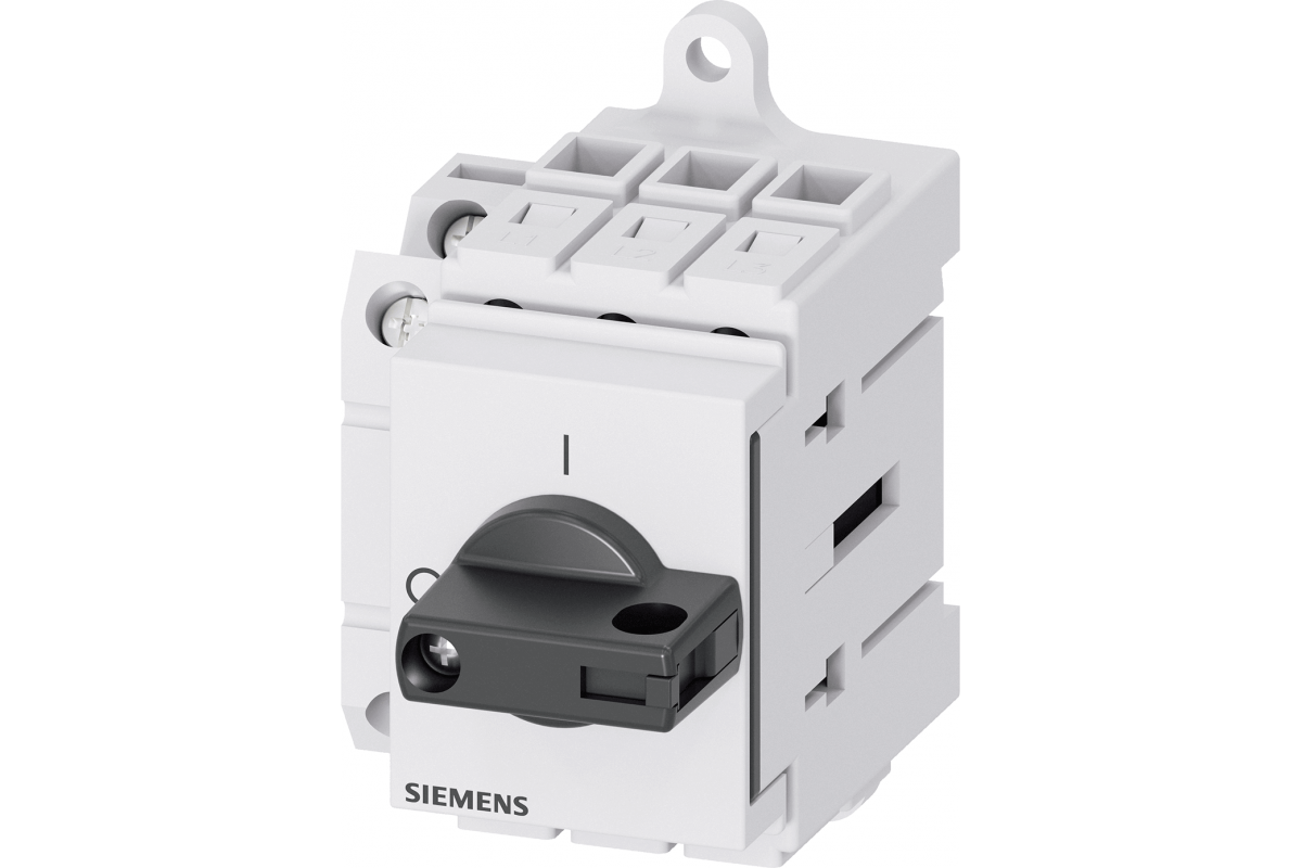 Выключатель нагрузки 3LD3, Iu 63 A Главный выключатель 3-полюсный Номинальная рабочая мощность при переменном токе 23 A при 400 В 22.0 кВт Установка в распределительных щитах, Базовый выключатель с селекторной ручкой черный с вспомогательным выключателем 1OE + 1S