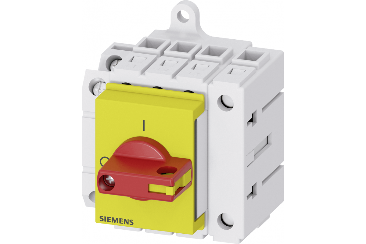 Выключатель нагрузки 3LD3, Iu 63 A Главный выключатель 3-полюсный + N Номинальная рабочая мощность при AC-23 A при 400 В 22.0 кВт Установка в распределительных щитах, Базовый выключатель с селекторной ручкой красный / желтый с вспомогательным выключателем 1OE + 1S