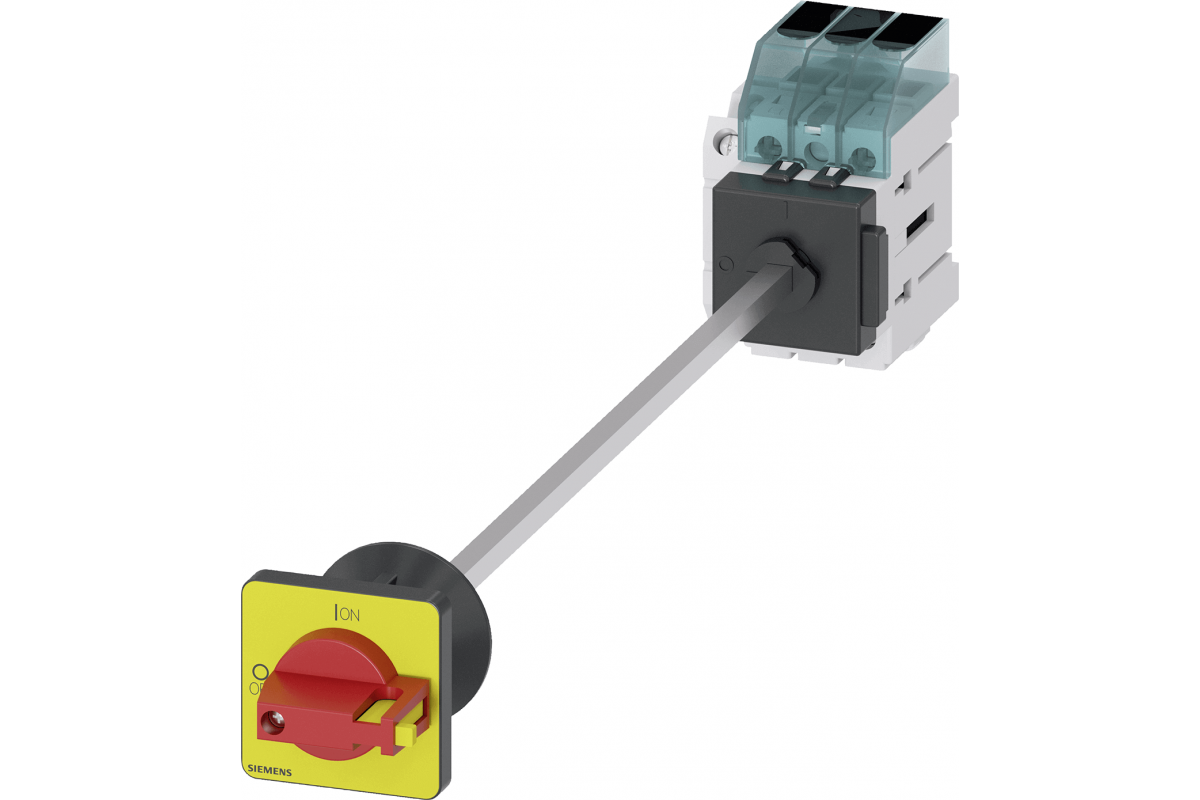 Выключатель нагрузки 3LD3, Iu 63 A Главный выключатель 3-полюсный Номинальная рабочая мощность при AC-23 A при 400 В 22.0 кВт напольный монтаж Основной выключатель с дверной муфтой монтаж в центральное отверстие 22.5 мм Тумблер красный / желтый 48x48 мм со вспомогательным выключателем 1OE + 1S