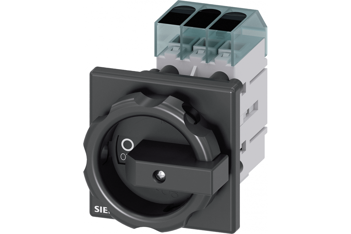 Выключатель нагрузки 3LD3, Iu 63 A Главный выключатель 3-полюсный Номинальная рабочая мощность при AC-23 A при 400 В 22.0 кВт Монтаж на передней панели Базовый выключатель с монтажом в центральное отверстие 22.5 мм Тумблерный привод черный 66x66 мм