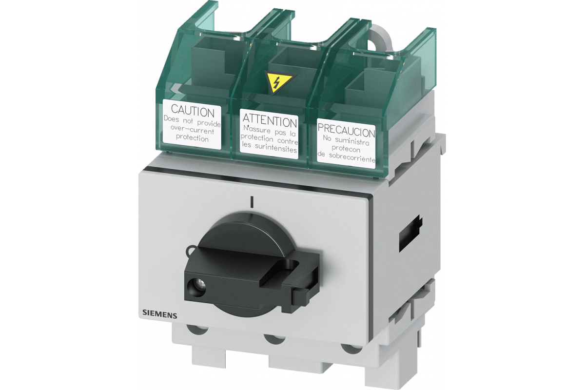 SENTRON, выключатель-разъединитель 3LD5 UL, главный выключатель, 3-пол., допуск согласно UL 489, UL60947-4-1 и МЭК 60947-3, UL: 60A, расчетный кратковр. выдерживаемый ток КЗ: 50 кА при 480 В AC, рабочая мощность @ 480 В AC 3-фазн.: 40 л. с., МЭК: 63A, рабочая мощность при AC-23A при 400 В: 30 кВт, монтаж на горизонтальную поверхность, в т. ч. прямой привод, цвет: чёрный вкл. клеммные крышки для входной стороны