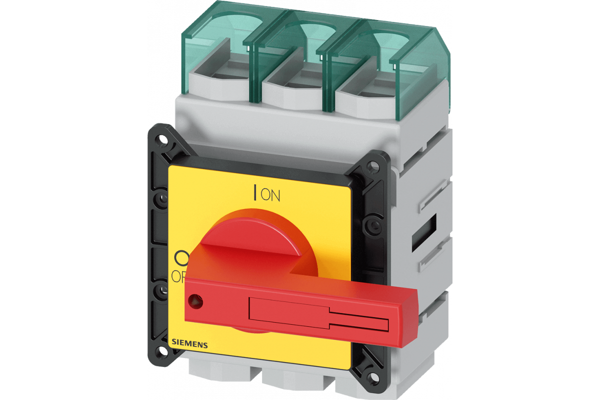 SENTRON, Выключатель в литом корпусе 3LD5 UL, аварийное отключение, 3-полюсный, сертифицирован согласно UL489 UL60947-4-1 и IEC60947-3, UL: 125A, SCCR 65kA при 480VAC, Рабочая мощность при 480VAC 3-фаз: 75 л.с., IEC: 125A, Рабочая мощность при AC-23A при 400В: 55кВт, фронтальный монтаж, поворотный механизм управления, красный/желтый, крепление рукоятки на 4 отверстия, вкл. клеммные крышки для подающей стороны
