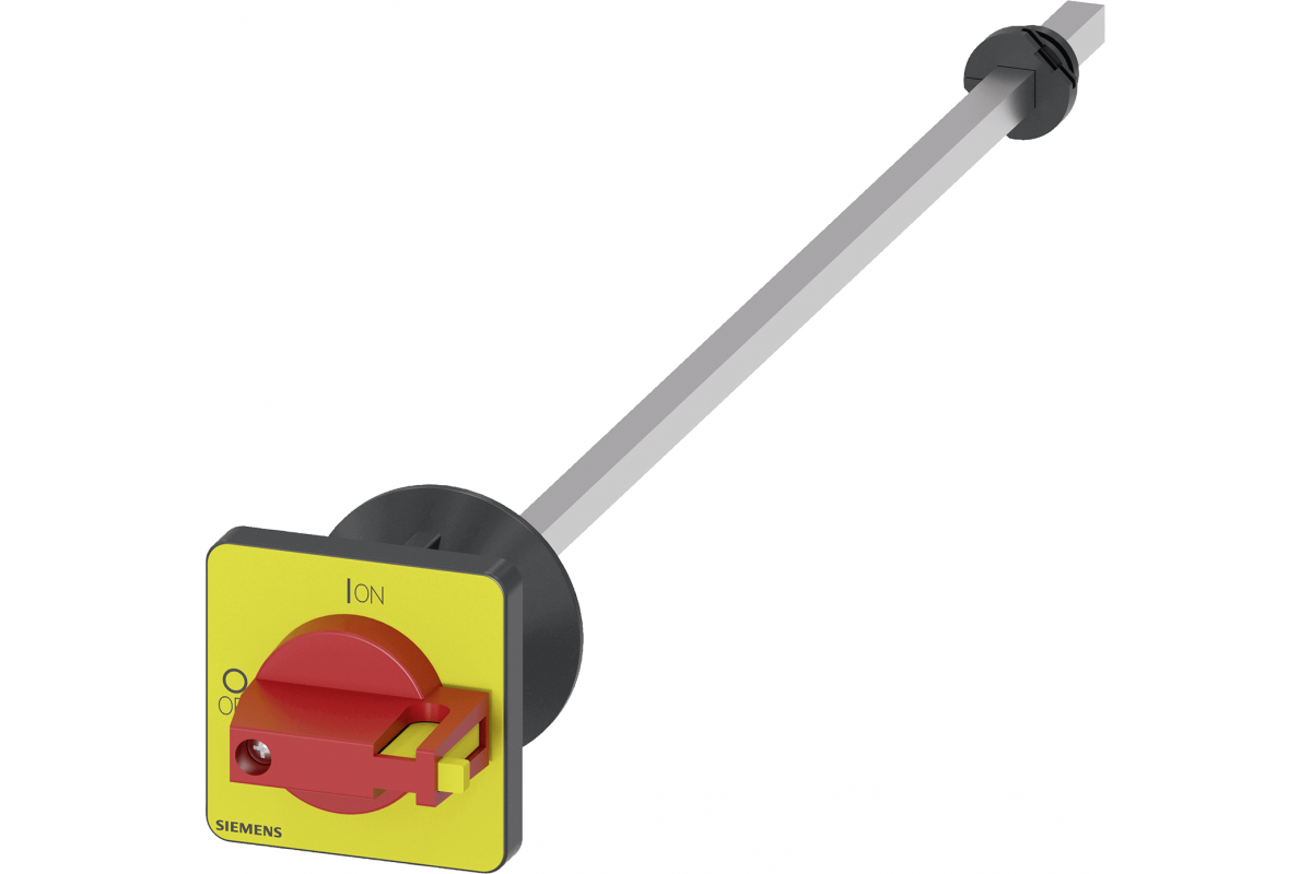 Поворотный рабочий механизм с дверной муфтой красный / желтый 48x48 мм, монтаж на передней панели Центральное отверстие 22.5 мм с соединительной частью с валом длиной 300 мм, 6x6 мм, принадлежности для выключателя нагрузки 3LD3