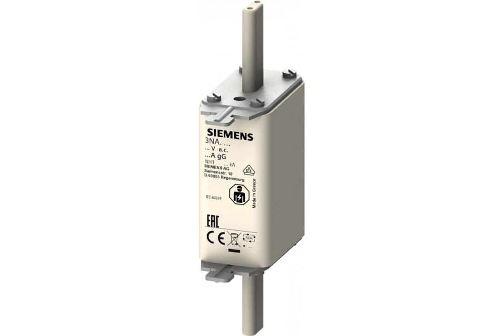LV HRC плавкий элемент, NH1, В: 63 A, gG, Un AC: 500 В, Un DC: 440 В, индикатор спереди, наконечники для захвата под напряжением