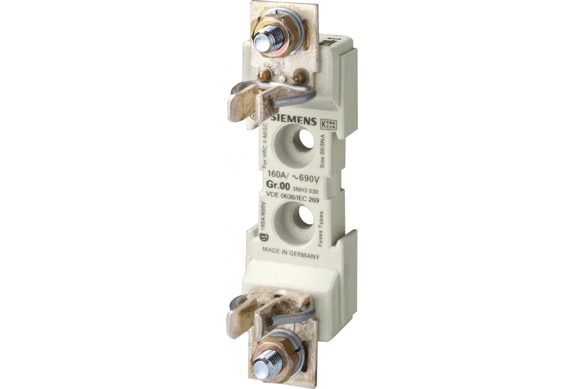 ОСНОВАНИЕ ПЛАВКОЙ ВСТАВКИ Uном.=660В, Iном.=160А, ТИПОРАЗМЕР 00, 1-ПОЛЮСН. ПЛОСКИЙ ЗАЖИМ, 95 КВ. MM