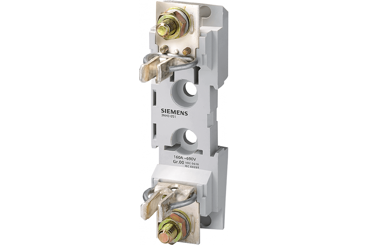 ОСНОВАНИЕ ПЛАВКОЙ ВСТАВКИ Uном.=690В, Iном.=160А, ТИПОРАЗМЕР 00, 1-ПОЛЮСН. ПЛОСКИЙ ЗАЖИМ, ВИНТ