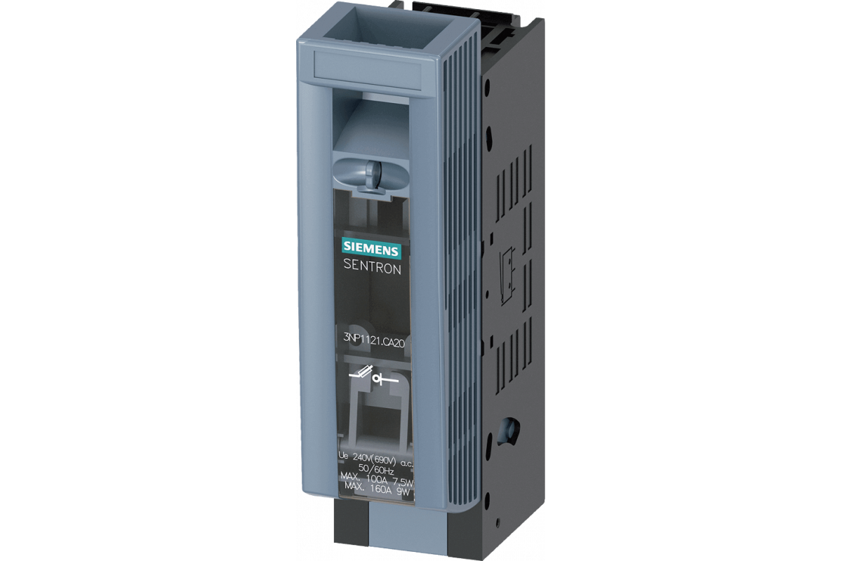 SENTRON, разъединитель с предохранителем 3NP1, 1-полюсный, NH000, 160 A, для сборки и установки на монтажной плате, клемма коробчатая, уровень крышки 45 мм