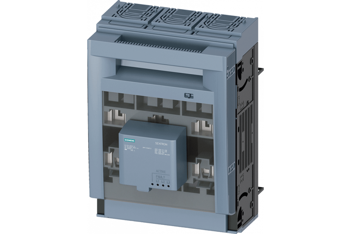 SENTRON, Разъединитель с предохранителем 3NP1, 3-полюсный, NH2, 400 A, для шинной сборки 8US 60 мм, плоская клемма, Контроль предохранителей: электронный EFM10, Уровень крышки 32/70 мм