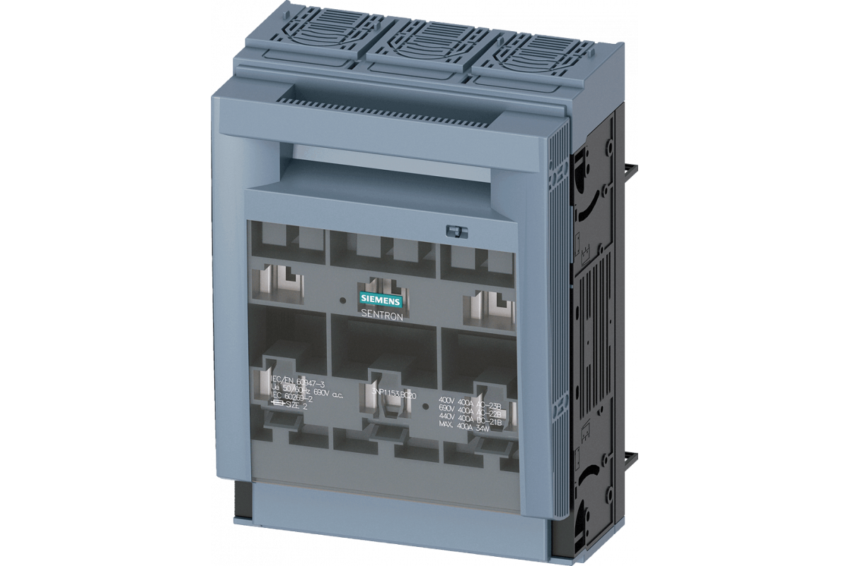 SENTRON, Предохранитель-разъединитель 3NP1, 3-полюсный, NH2, 400 A, для шинной сборки 8US 60 мм, Коробчатая клемма, Уровень крышки 32/70 мм