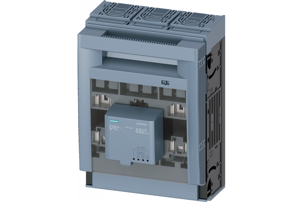SENTRON, Разъединитель с предохранителем 3NP1, 3-полюсный, NH2, 400 A, для сборки и установки на монтажной панели, Коробчатая клемма, Контроль предохранителей: электронный EFM10, Уровень крышки 70 мм