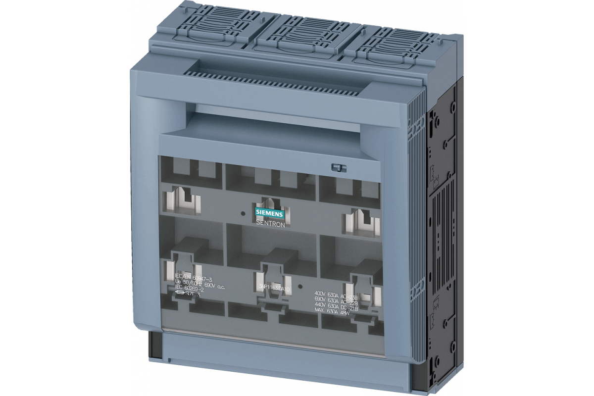 SENTRON, Предохранитель-разъединитель 3NP1, 3-полюсный, NH3, 630 A, для сборки и установки на монтажную плату, плоская клемма, уровень крышки 70 мм