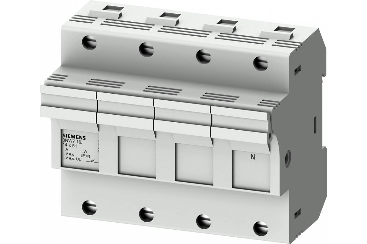 SENTRON, цилиндрический держатель предохранителя, 14x51 мм, 3P+N, In: 50 A, Uн AC: 690 В, светодиодный детектор сигнала