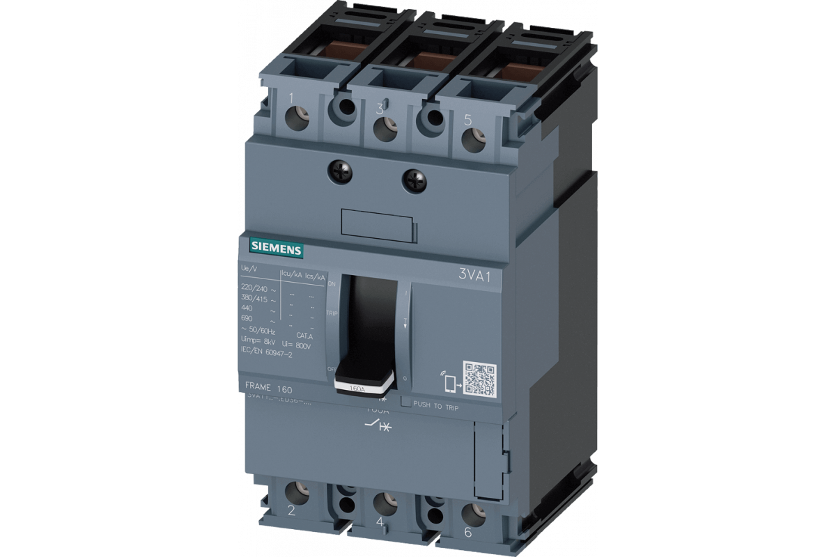 ВЫКЛЮЧАТЕЛЬ В ЛИТОМ КОРПУСЕ 3VA1 IEC ТИПОРАЗМЕР 160 КЛАСС ОТКЛ. СПОСОБНОСТИ N ICU=25KA @ 415 В 3-ПОЛЮС., ЗАЩИТА ЛИНИИ TM210, FTFM, IN=160A ЗАЩИТА ОТ ПЕРЕГРУЗКИ IR=160A ФИКСИР. ЗАЩИТА ОТ ТОКА КЗ II=10 X IN ПРИСОЕДИНЕНИЕ КАБЕЛЕМ