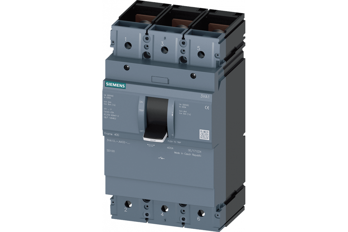 выключатель-разъединитель 3VA1 IEC типоразмер 400 3-пол. SD100, In = 400 А без защиты от перегрузки без защиты от коротких замыканий плоский винтовой зажим