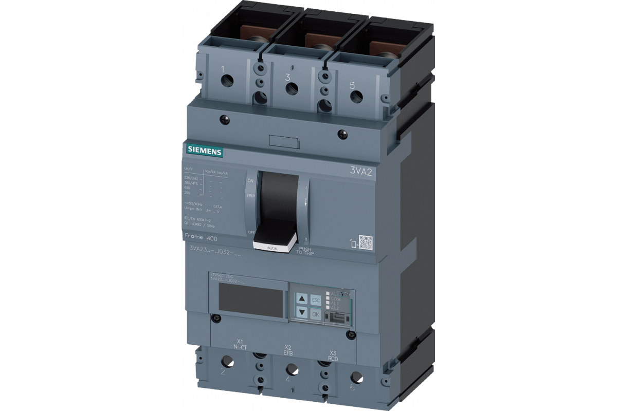 ВЫКЛЮЧАТЕЛЬ В ЛИТОМ КОРПУСЕ 3VA2 IEC ТИПОРАЗМЕР 400 КЛАСС ОТКЛ. СПОСОБНОСТИ H ICU=85KA @ 415 В 3-ПОЛЮС., ЗАЩИТА ЛИНИИ ETU560, LSIG, IN=250A ЗАЩИТА ОТ ПЕРЕГРУЗКИ IR=100A ...250A ЗАЩИТА ОТ ТОКА КЗ ISD=0,6..10X IN, II=1,5..12X IN ЗАЩИТА НЕЙТРАЛИ ОПЦИОНАЛЬНО С ВНЕШНИМ ТТ,ДО 160% ЗАМЫК. НА ЗЕМЛЮ, ПЕРЕКЛЮЧ. IG=0,2... 1 X IN, TG=0,05-0,8MS ШИННОЕ ПРИСОЕДИНЕНИЕ