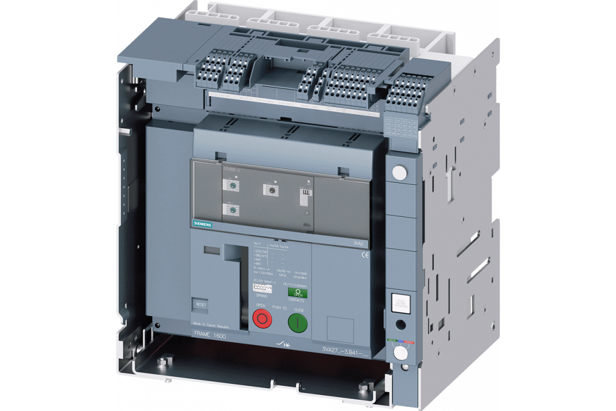 выкатной авт. выключатель в литом корпусе с выкатной корзиной и PSS типоразмер 1600; с RTC и 4AUX сигнальный контакт срабатывания S24; Icu "H" Icu = 85 кA @ 415 В, 4-пол., слева ETU320, LI, In = 1600 A поворотный кодовый переключатель Ir = 640...1600 А Ii = 1,5...15 x In защита нейтрали, регулируемая ВЫКЛ., 50%, 100%, 200% задний вертикальный вывод без коммуникационного интерфейса, без функции измерения ручной привод пружинного аккумулятора с механическим сбросом без 2 вспом. расцепителей без 1-го вспом. расцепителя T30= уплотнительная дверная рамка, IP30 для выкатных выключателей