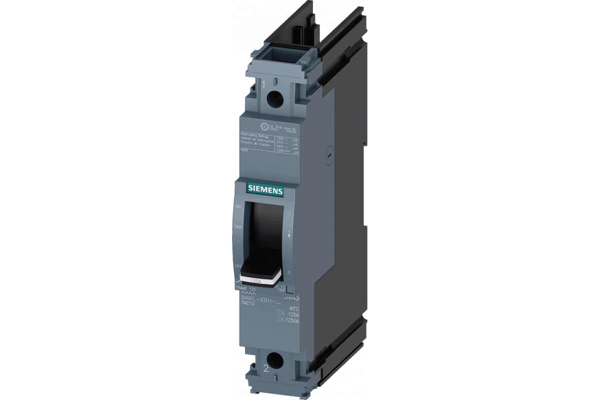 Автоматический выключатель 3VA5 UL frame 125 breaking capacity class S 25kA @ 277V 1-pole, line protection TM210, ftfm, In=20A overload protection Ir=20A fixed short circuit protection iI=10 x In w/o connection