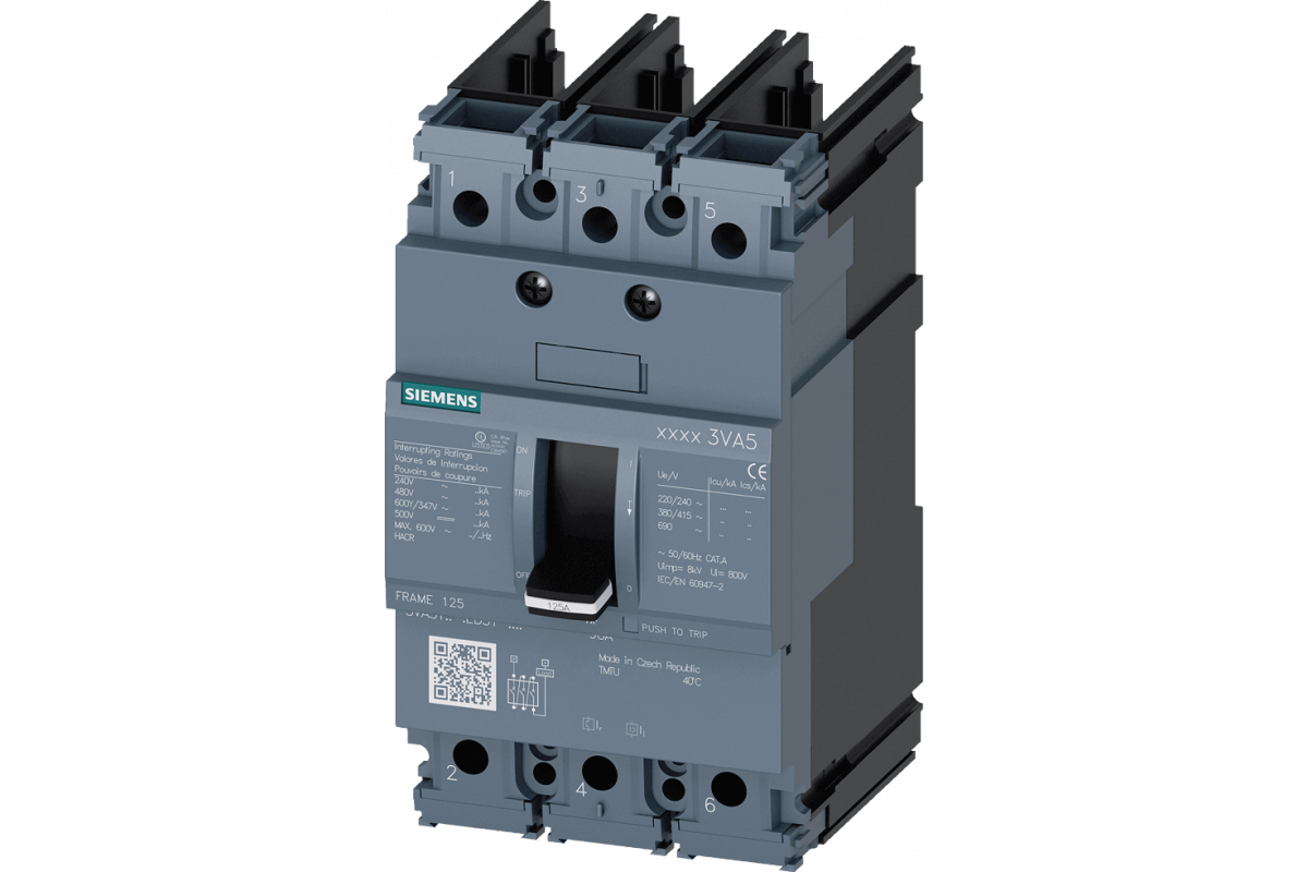 Автоматический выключатель 3VA5 UL frame 125 breaking capacity class M 35kA @ 480V 3-pole, line protection TM210, ftfm, In=20A overload protection ir=20A fixed short circuit protection iI=10 x In w/o connection