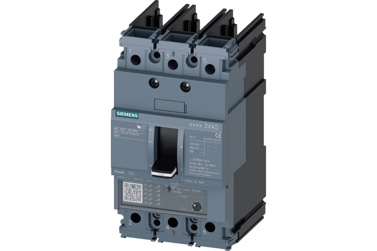 Автоматический выключатель 3va5 ul frame 125 3-pole,motor starter protection tm120m, am, in=25a without overload protection short circuit protection ii=3...7 x in w/o connection