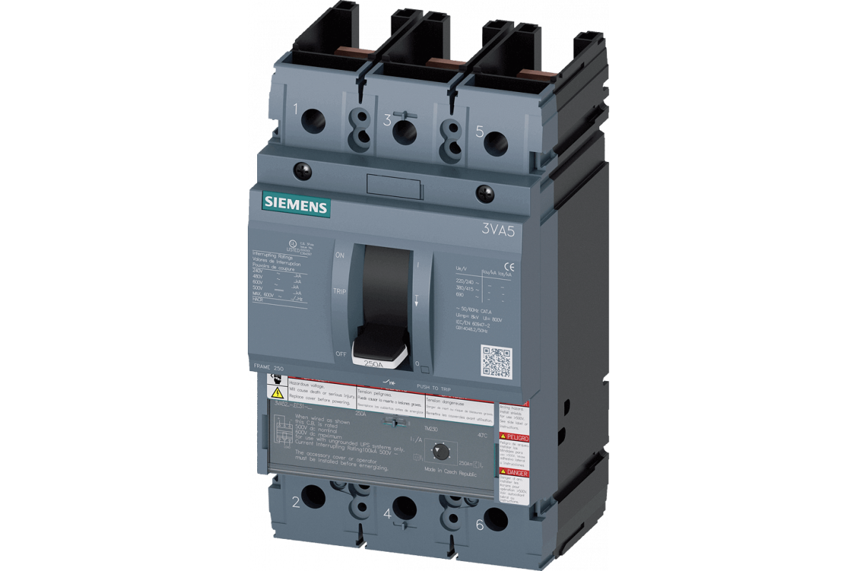 автоматический выключатель 3VA5 UL на раме 250 отключающая способность класс C 100kA @ 480V 3-полюсный, защита линии TM230, FTAM, In=100A защита от перегрузки Ir=100A фиксированная защита от короткого замыкания Ii=5...10 x В без подключения