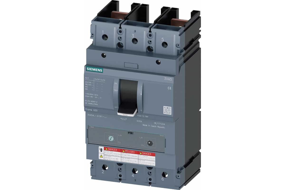 Выключатель 3VA5 UL Frame 600 Отключающая способность КЛАСС М 35 кА при 480 В 2 ПОЛЯ, ЗАЩИТА ЛИНИИ TM230, FTAM, In=600A ЗАЩИТА ОТ ПЕРЕГРУЗКИ IR=600A ФИКСИРОВАННАЯ ЗАЩИТА ОТ КЗ Ii=4..8 x In W/O CONNECTION