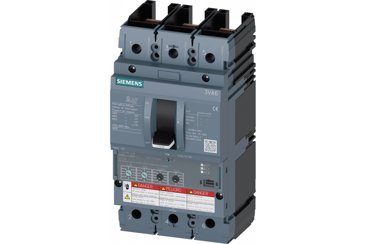 Автоматический выключатель 3VA6 UL frame 150 breaking capacity class M 35kA @ 480V 3-pole, line protection ETU350, LSI, In=100A overload protection ir=40A ...100A short circuit protection Isd=1,5... 10 x Ir, iI=12 x In w/o connection