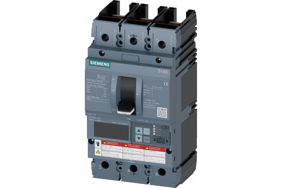Автоматический выключатель 3VA6 UL frame 150 breaking capacity class H 65kA @ 480V 3-pole, line protection ETU830, LIG, In=100A overload protection ir=40A ...100A short circuit protection iI=1,5...12 x In ground-fault-protection ig=0,2. .. 1 x In, tg=0,05-0,8s w/o connection