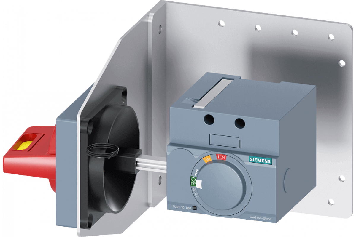 ПОВОРОТНЫЙ ПРИВОД С УСТАНОВКОЙ НА БОКОВУЮ СТЕНКУ АВАР. ОСТАНОВ. IEC IP65 С МОНТАЖНОЙ ПЛАНКОЙ КОМПЛЕКТ ПОДСВЕТКИ 24 В ПОСТ. ТОКА ПРИНАДЛЕЖНОСТЬ ДЛЯ 3VA1 100/160