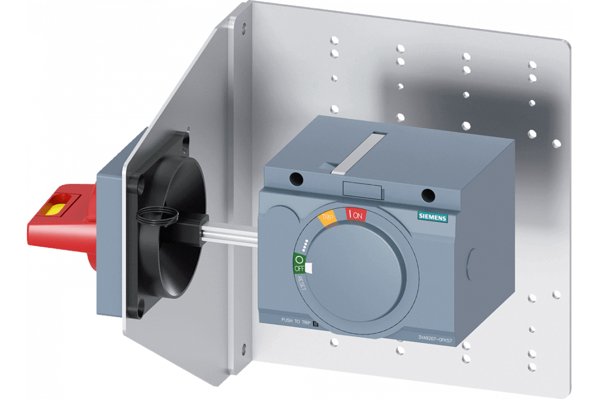 ПОВОРОТНЫЙ ПРИВОД С УСТАНОВКОЙ НА БОКОВУЮ СТЕНКУ АВАР. ОСТАНОВ. IEC IP65 С МОНТАЖНОЙ ПЛАНКОЙ КОМПЛЕКТ ПОДСВЕТКИ 24 В ПОСТ. ТОКА ПРИНАДЛЕЖНОСТЬ ДЛЯ 3VA2 100/160/250