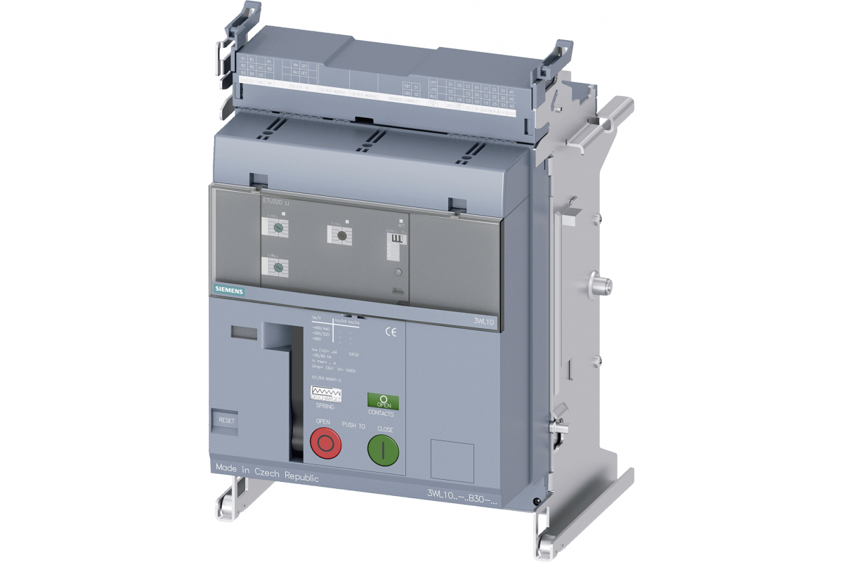 Выкатной авт. выключатель без выкатной корзины 3-пол., типоразм. 0, мэк in = 630 a до 690 в, ac 50/60 гц icu = 42 кa при 415 в icu = 42 кa при 500 в расцепитель макс. тока etu320 поворотный кодовый переключатель li с сигнальным контактом срабатывания, доп. контакты rtc и 4aux регулируемая защита l: ir 0,4-1 in i: ii 1-15 in с регулируемой защитой нейтрали выводы стандартизированы для корзины 3vw81 без коммуникационного интерфейса, без функции измерения моторизованный привод 220...250 в ac/dc вкл. s21, предназначенный для пружинных аккумуляторов сигнальный выключатель состояния с электр. и мех. сбросом сигнализатор включения (cc) 220-240 в ac/dc с 2 вспом. расцепителями uvr, мгнов. действ. мин. напряжение 24 в ac/dc с 1 вспом. расцепителем, st расцепитель напряжения 220-240 в ac/dc