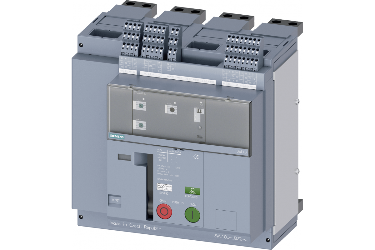 автоматические выключатели с фиксированным монтажом 4-полюсные, размер рамки 0, проводник IEC N справа In=630A - 690V, 50/60Hz AC Icu=42kA при 415V Icu=42kA при 500V ETU320 электронные расцепители li поворотный кодирующий выключатель с выключателем сигнализации отключения, RTC и 4Aux вспомогательные выключатели защита регулируемая l: Ir 0.4-1 В i: ii 1-15 В w. var. n защита проводников заднее горизонтальное соединение
