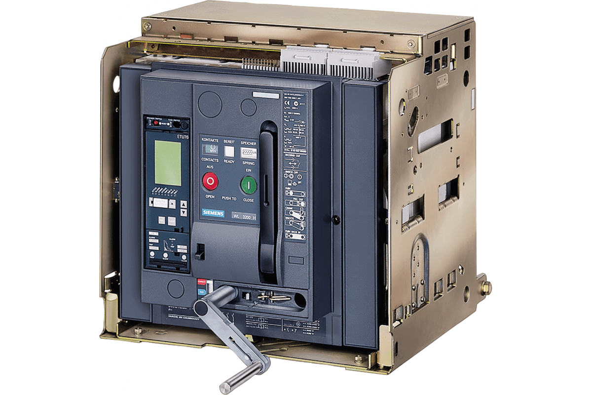 Воздушный выключатель выкатной с корзиной 3-пол., типоразмер 3, МЭК In=5000 A до 690 В, 50/60 Гц AC Icu=100 kA при 500 В заднее горизонтальное присоединение БЕЗ МАКСИМАЛЬНОГО РАСЦЕПИТЕЛЯ МОТОРНЫЙ/РУЧНОЙ ПРИВОД С НАКОПИТЕЛЕМ НАПРЯЖЕНИЕ НА ДВИГАТЕЛЕ AC 50/60 Гц110-127V СООТВ. DC 110-125V СБРОС AC 50/60 Гц 110V, DC 110V С 1-ЫМ НЕЗАВИСИМЫМ РАСЦЕПИТЕЛЕМ "F", F1 AC50/60 Гц 110V/ DC 110V, 100%ED БЕЗ 2-ГО ДОП.РАСЦЕПИТЕЛЯ 4 НО + 4 НЗ