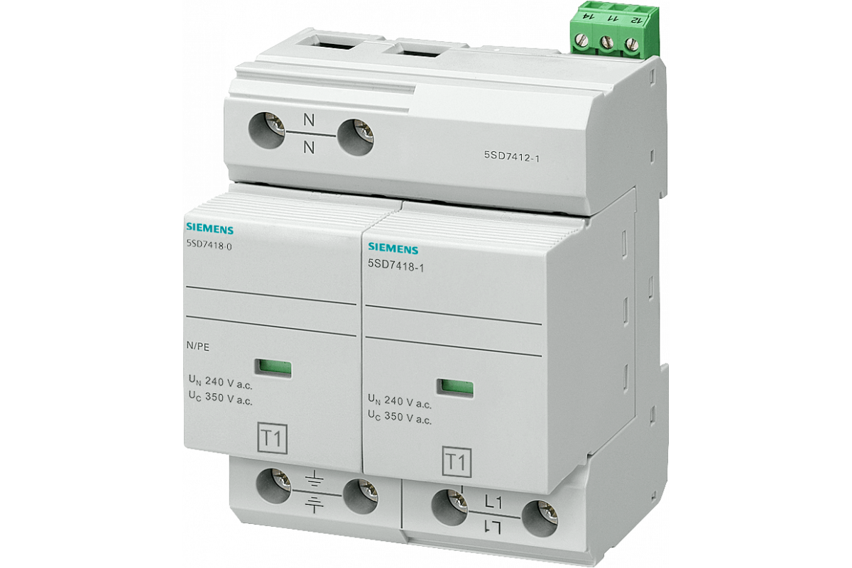 Молниеотводы, тип 1 Класс требований B, UC 350 В Подключаемые защитные модули 2-полюсные, 1+1 цепь для систем TN-S и TT с дистанционной индикацией