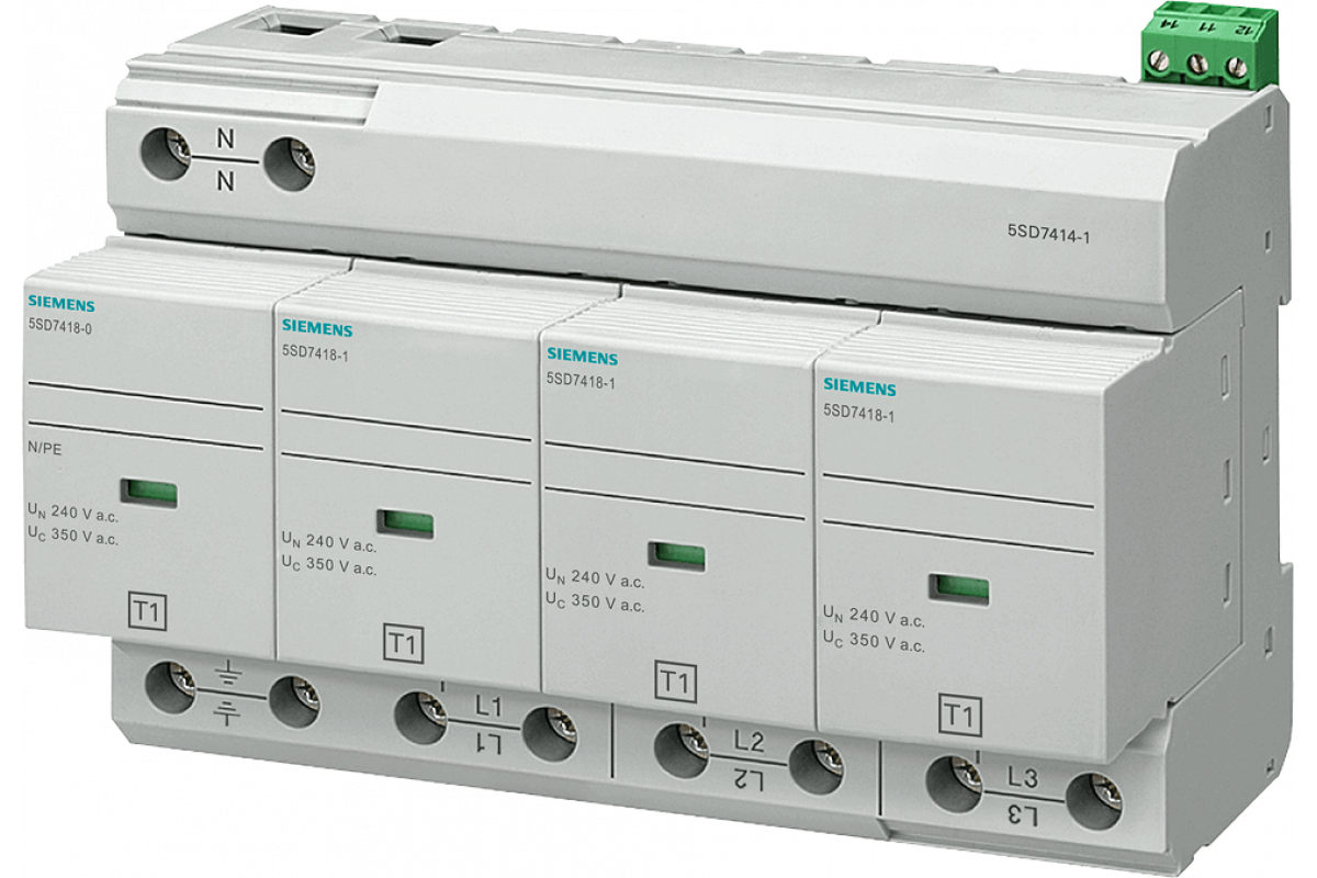 РАЗРЯДНИК МОЛНИЕЗАЩИТЫ ТИП 1 REQUIREMENT КАТЕГОРИЯ B, UC 350V PLUG-IN PROTECTION BLOCKS 4-ПОЛЮСА, 3+1 CIRCUIT ДЛЯ TN-S AND TT-SYSTEMS W. REMOTE DISPLAY