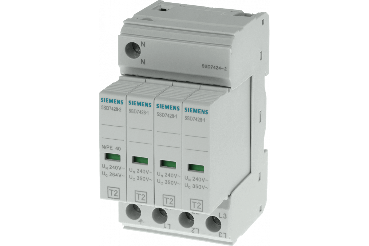 Разрядник T2, UN 240/400 V, UC 350/264 V AC, втычной зашитный модуль, 3+1 цепь (TN-S, TT), ширина 49.2 mm