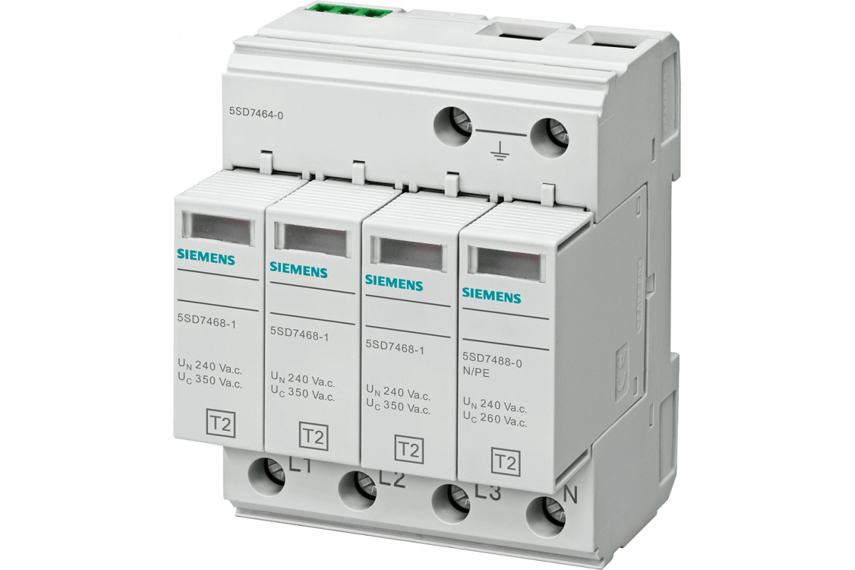 Устройство защиты от импульсных перенапряжений Тип 2 Класс требований C, UC 350 В Съемные защитные модули 4-полюсные, 3+1 цепь для систем TN-S и TT