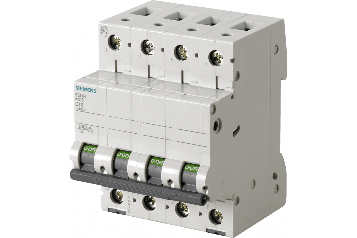 Миниатюрный автоматический выключатель 400 В 6 кА, 4-полюсный, C, 20 A