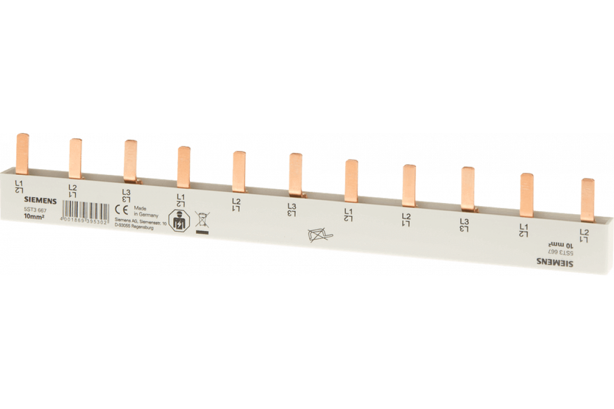 Штыревая шина, подключение 10 мм2: 3-фазное/+ 8x фазное с сенсорной защитой для 1FI, 4 полюса, NLI+8LS, 1 полюс