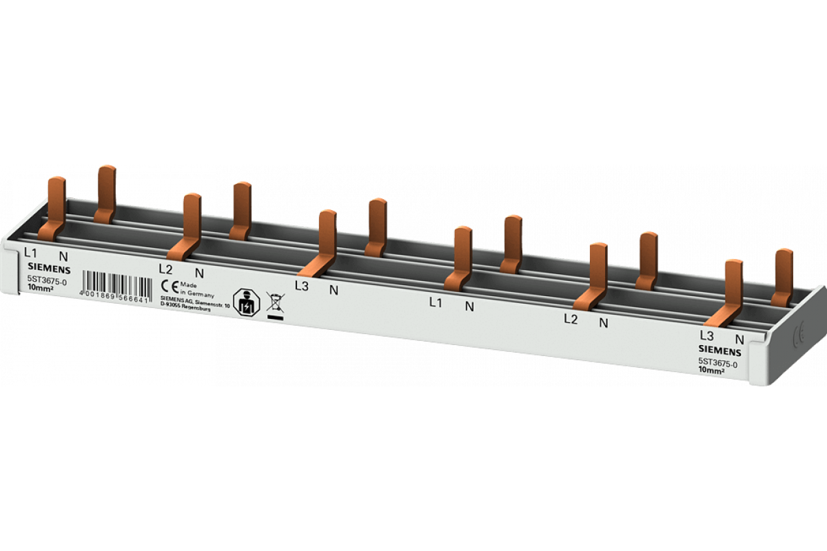 компактная контактная шина, подключение 10мм2: 3p/N 6x AFDD 5SM6 + 6x компактное устройство 1 МВт с сенсорной защитой 12 МВт фиксированной длины