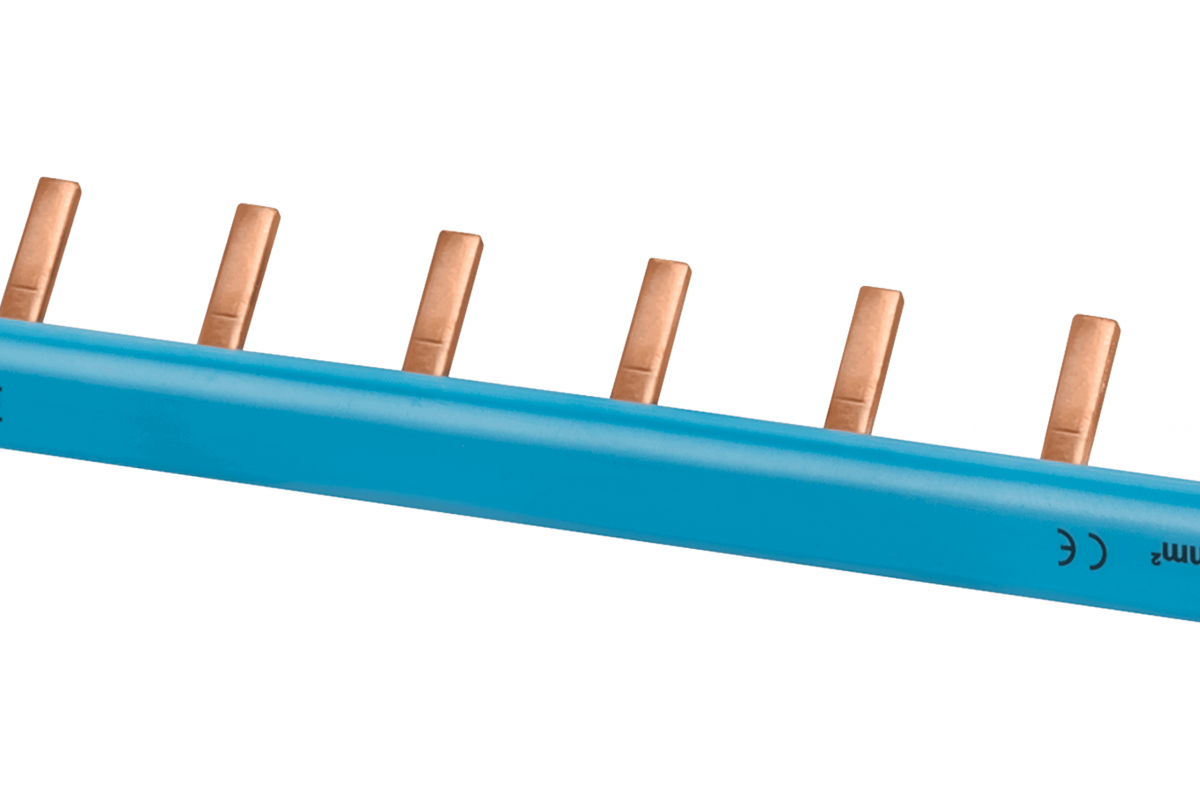Шинный шинопровод, 1-фазный 10 мм2, 12 контактов, изоляция синяя, можно резать, с торцевыми заглушками