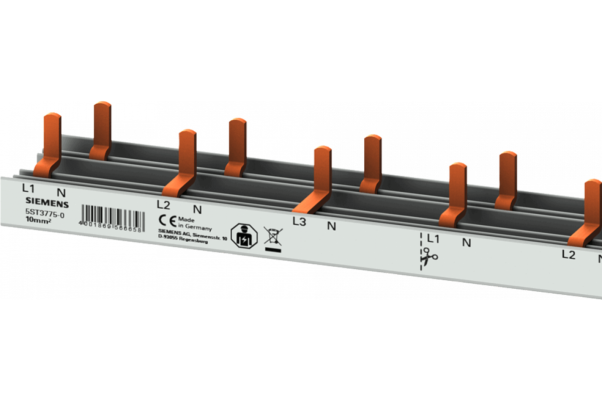 компактная штыревая шина, подключение 10 мм2: 3p/N AFDD 5SM6 + компактное устройство 1 МВт с защитой от прикосновения 1000 мм с возможностью резки