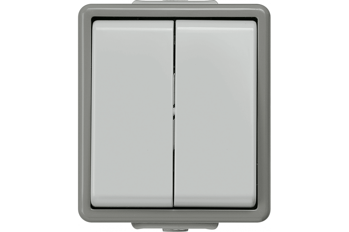 DELTA flache IP44, AP Темно-серый/светло-серый двойной двухходовой выключатель 10A 250V, 66x 75 мм