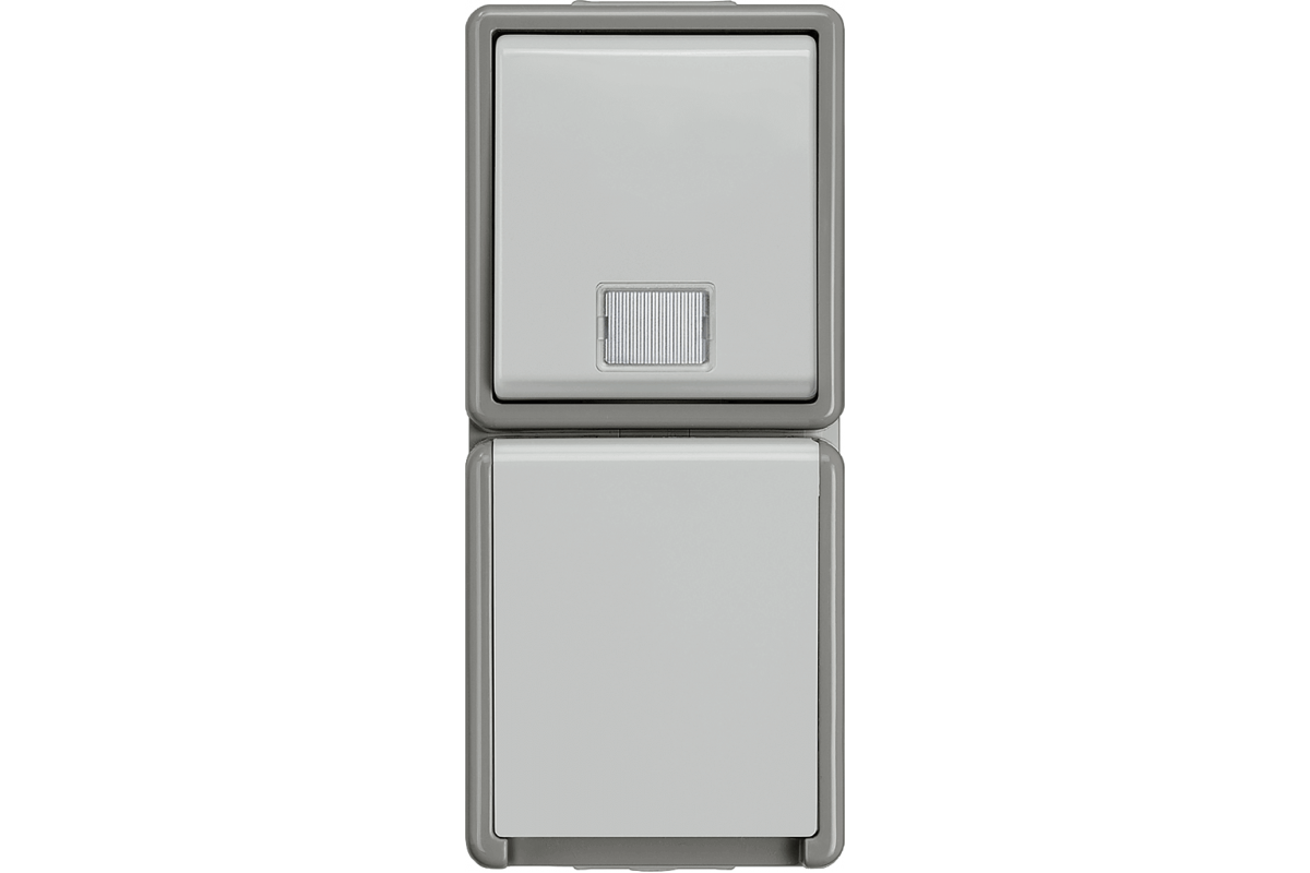 DELTA FLAECHE IP44 КОМБИНАЦИЯ КНОПКИ И РОЗЕТКИ SCHUKO С ЗАЩИТОЙ ОТ ПРИКОСНОВЕНИЯ РАЗМЕРЫ 151X66X54 MM