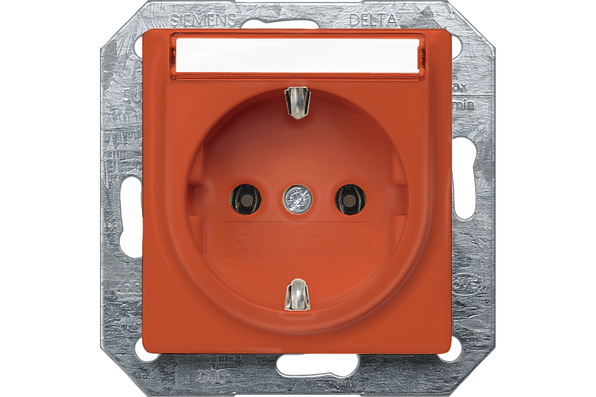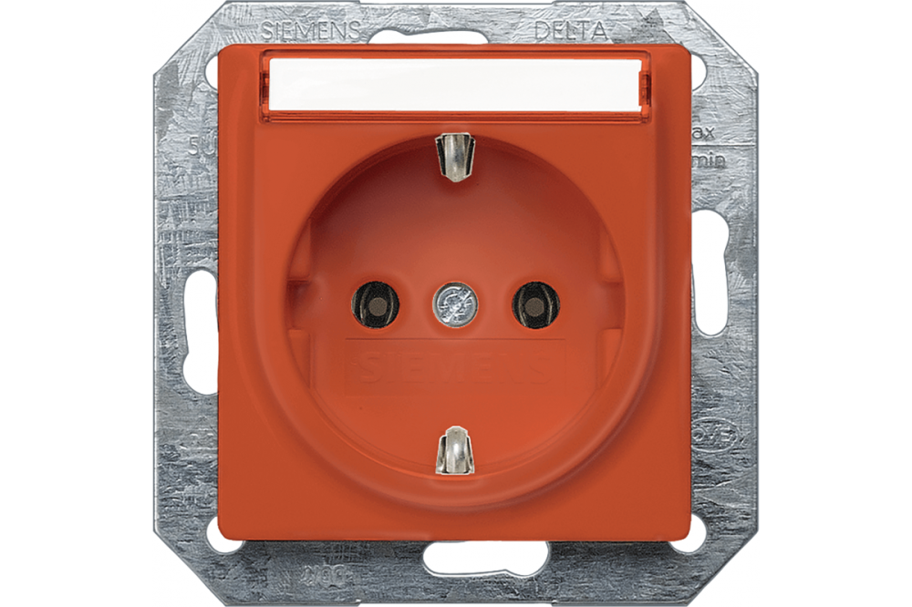 DELTA I-SYSTEM ОРАНЖЕВЫЙ РОЗЕТКА SCHUKO 10A DC/16A AC 250В C БЕЗРЕЗЬБОВЫМИ КОНТАКТНЫМИ ЗАЖИМАМИ С ПОЛЕМ ДЛЯ НАДПИСИ ЭЛ.-МЕХ.ЧАСТЬ