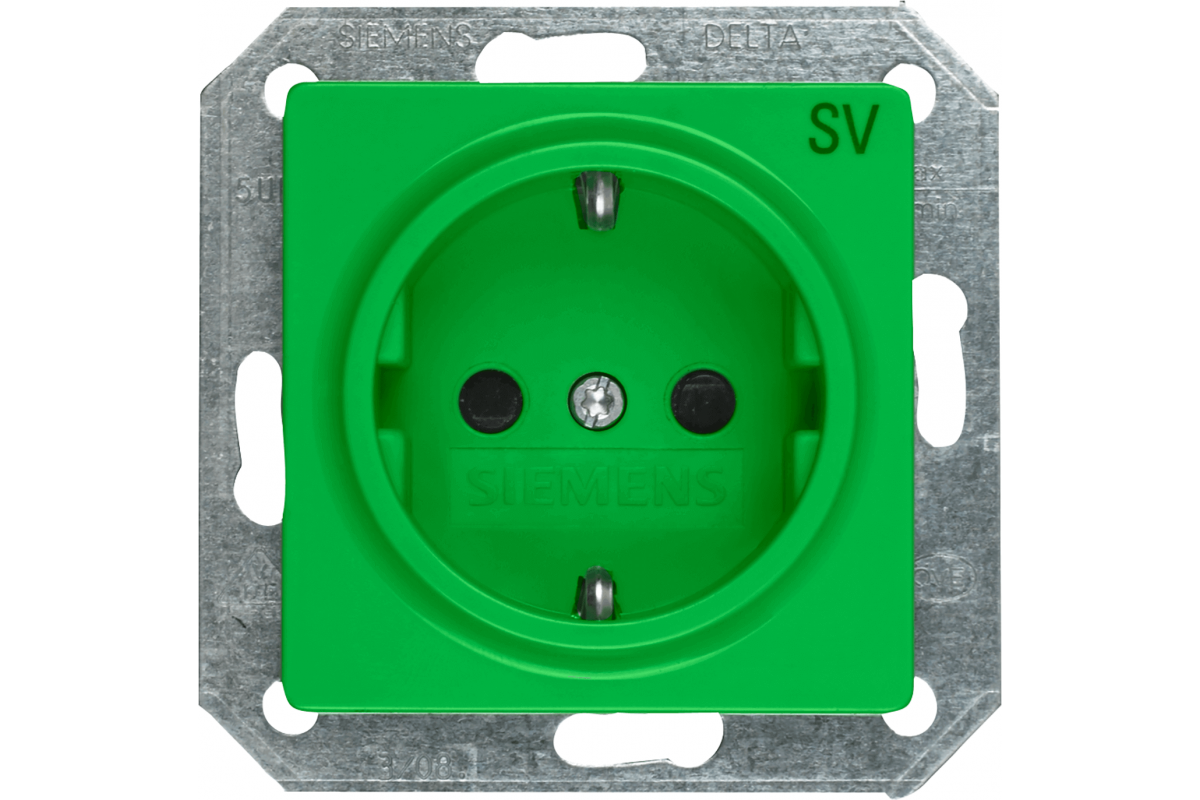 DELTA I-SYSTEM РОЗЕТКА SCHUKO С ЗАЩИТОЙ ОТ ПРИКОСНОВЕНИЯ НАДПИСЬ SV ЗЕЛЕНЫЙ, 55MM X 55MM