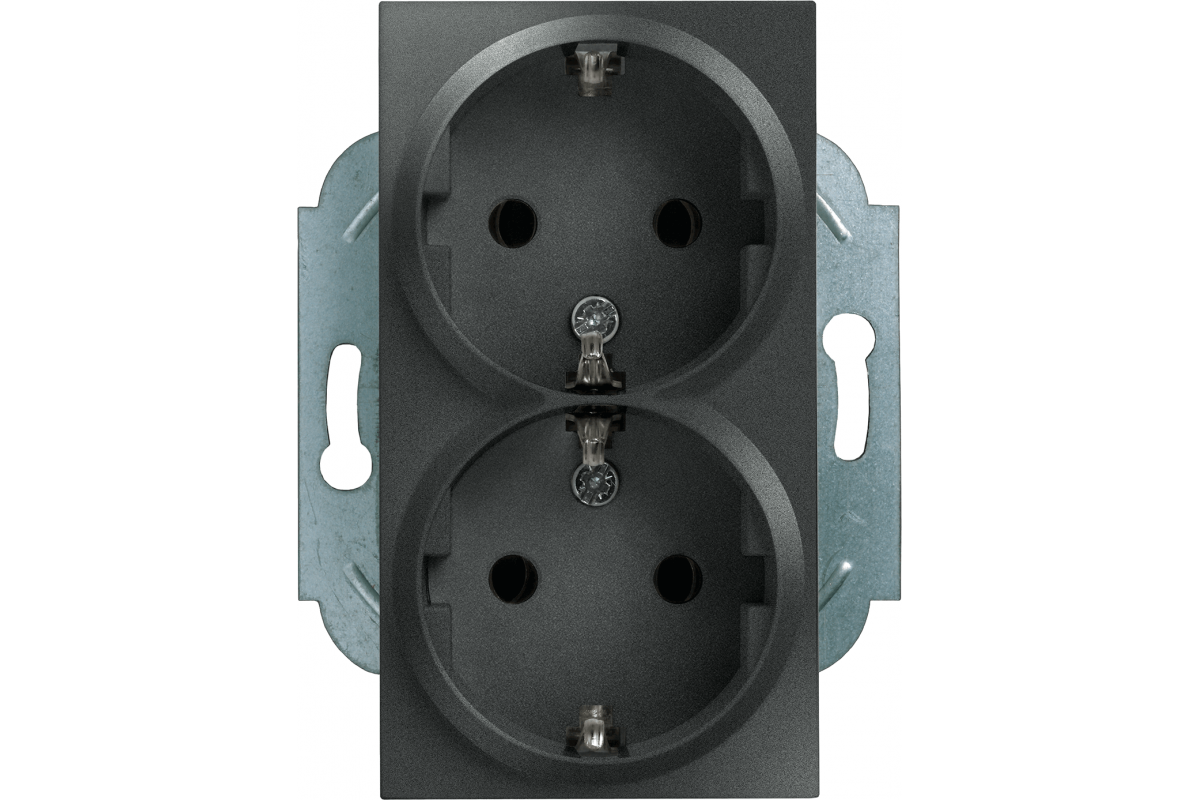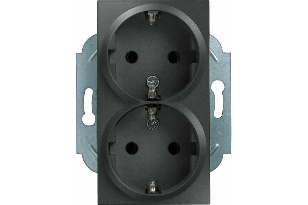 DELTA MIRO ДВОЙНАЯ РОЗЕТКА SCHUKO10/16A 250V ЧЕРНЫЙ МЕТАЛЛИК